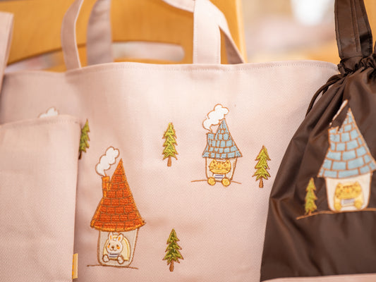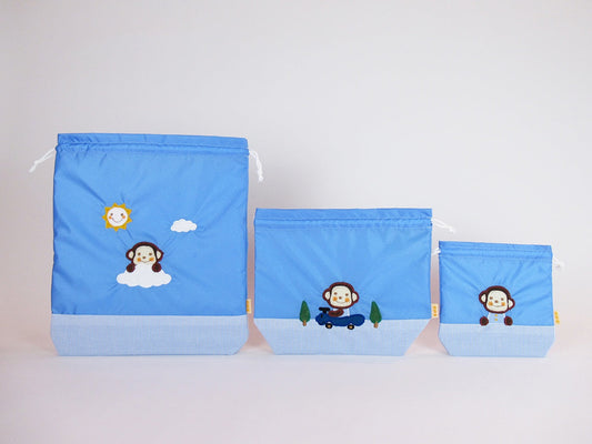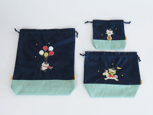 切り替えデザイン巾着 3点セット(色と刺繍の組み合わせ自由)