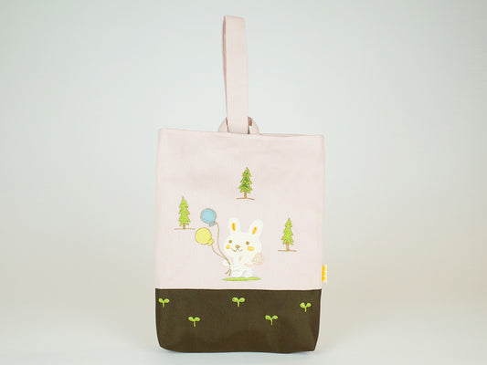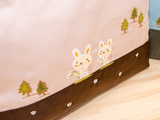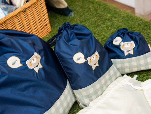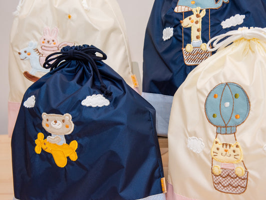 切り替えデザイン巾着 大サイズ(ネイビー・クマ/ネイビー・キリン/オフホワイト・ウサギ/オフホワイト・ネコ)